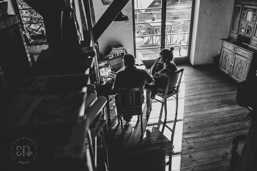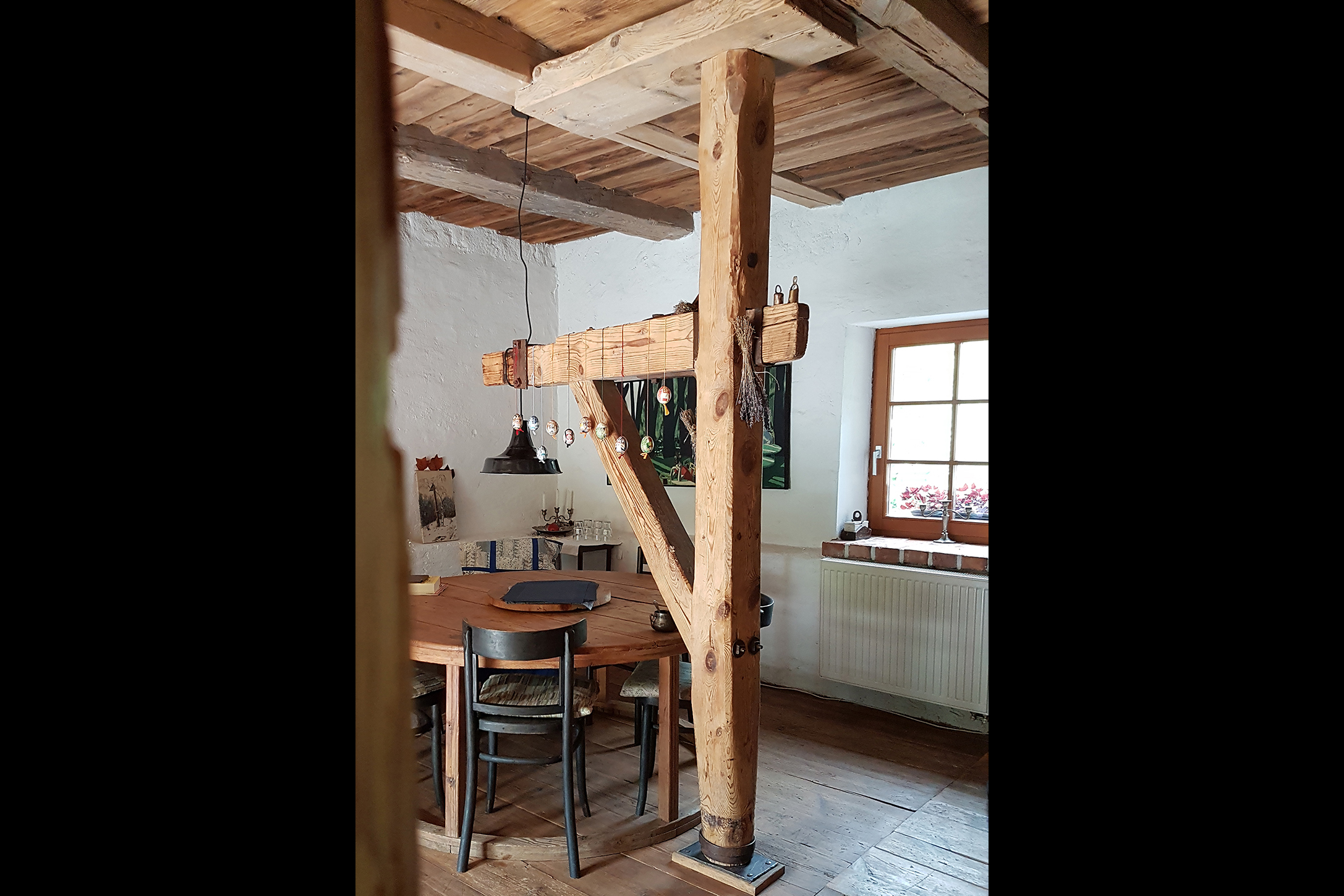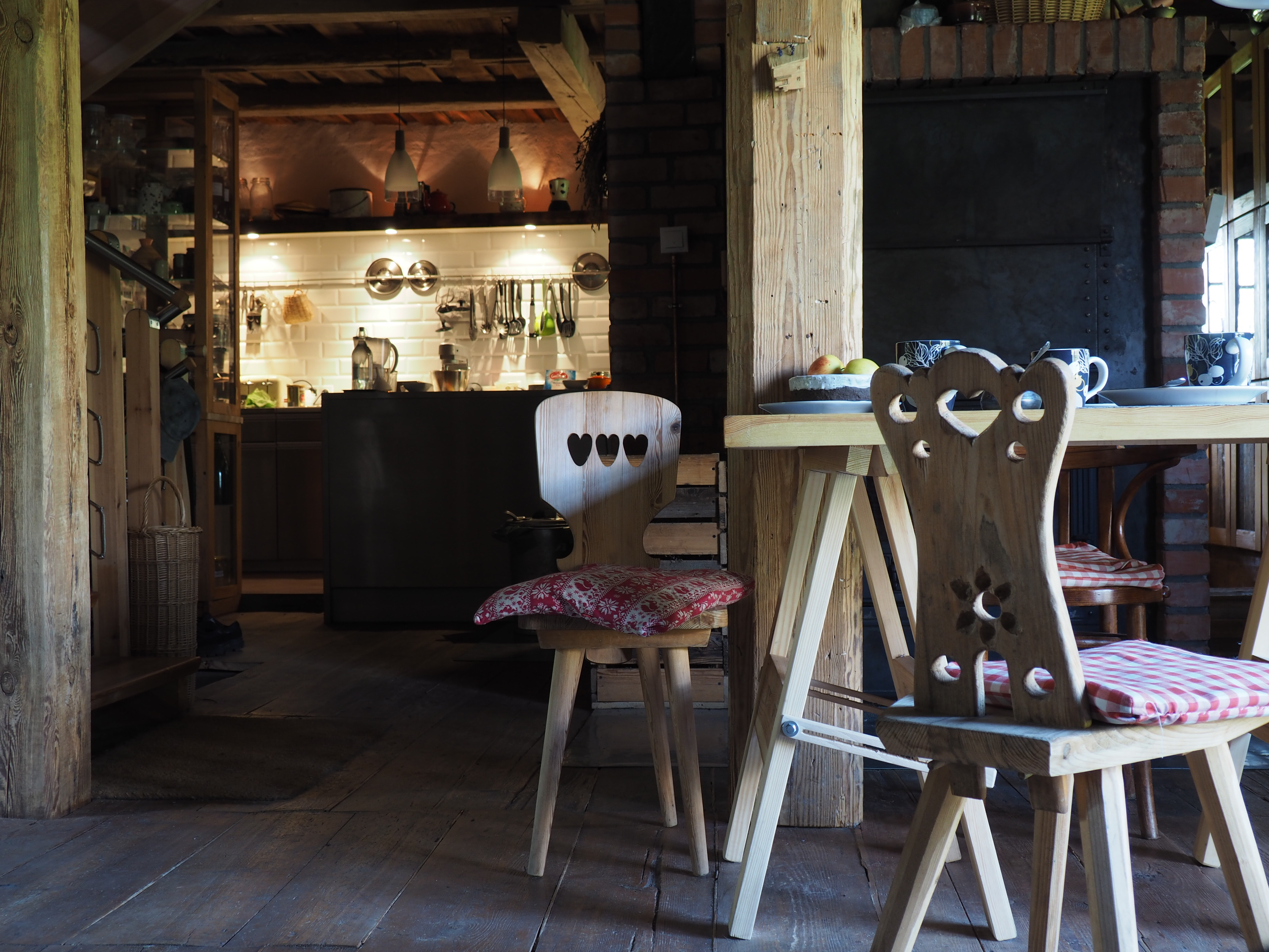 Okrągły stół w salonie sprzyja nawiązywaniu znajomości, rozmowie, słuchaniu płyt i wspólnym grom (mamy ich duży wybór). Jest częścią wyposażenia starego młyna – krył w sobie kiedyś żarna – bieguna i leżaka, ale to już dłuższa młyńska opowieść…
